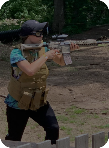 Airsoft simulates military gun combat with high powered BB weapons. The players are organized in teams to play against each other. Similar to paintball, airsoft requires teamwork and strategic thinking, but instead of paintballs players shoot small, harmless airsoft pellets.